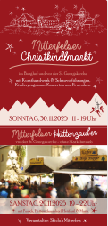 - Mitterfelser Christkindlmarkt am 1. Adventssonntag, 30.11.2025 von 11 Uhr - 19 Uhr, mit Marktbetrieb